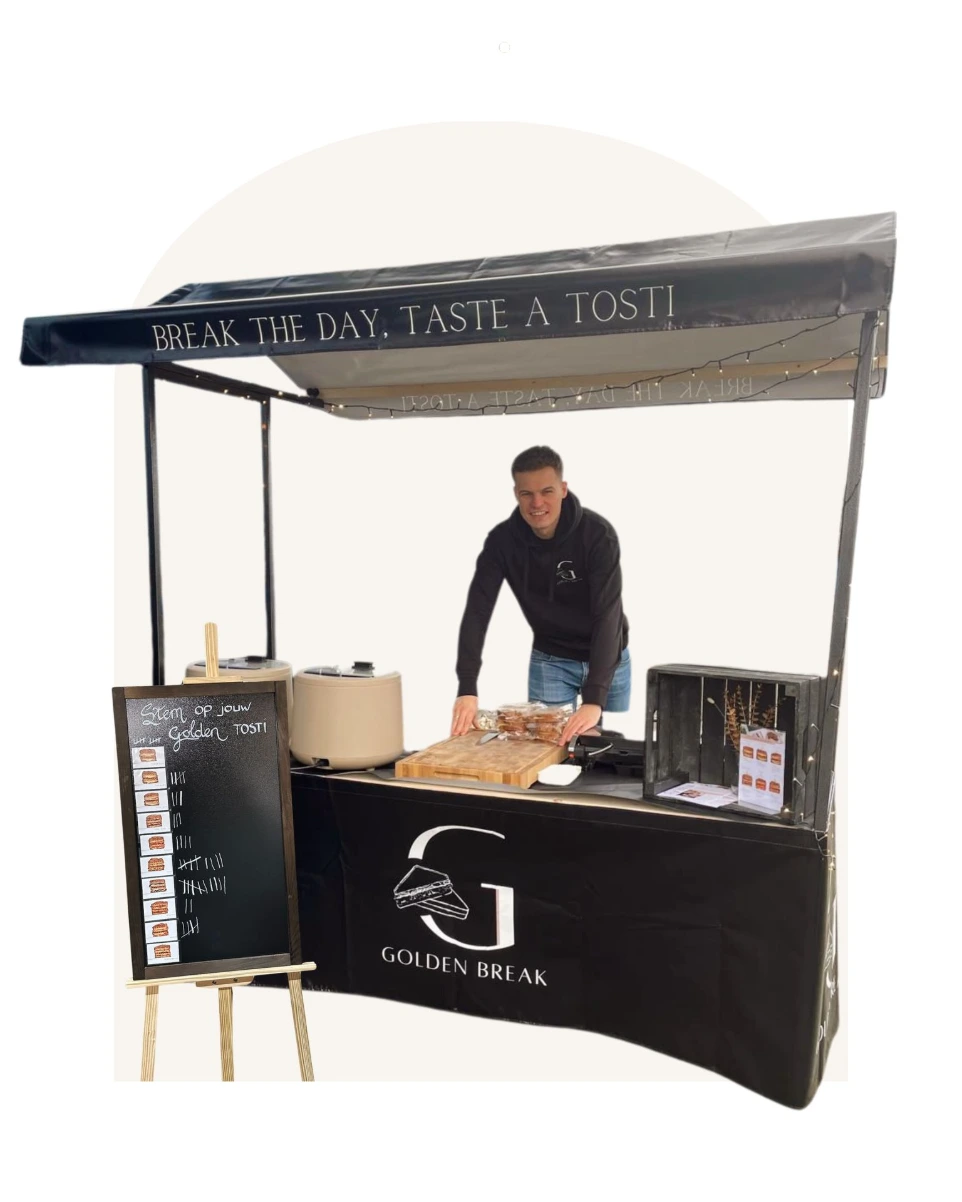 Golden Break organiseert graag een tosti-proeverij op locatie om medewerkers kennis te laten maken met onze unieke smaakvariaties. Op de afgesproken datum zijn wij een uur van tevoren aanwezig om de opbouw te realiseren. Een half uur voor aanvang worden de tosti’s gegrild en geserveerd via een warmhoudvitrine. Wij verzorgen alle benodigdheden, waaronder grills, warmhoudvitrine, verlengsnoeren, kartonnen bordjes, servetten en het golden scorebord. Jullie zorgen voor een geschikte locatie voor onze kraam, stroomvoorziening en de uitnodiging van de medewerkers.
